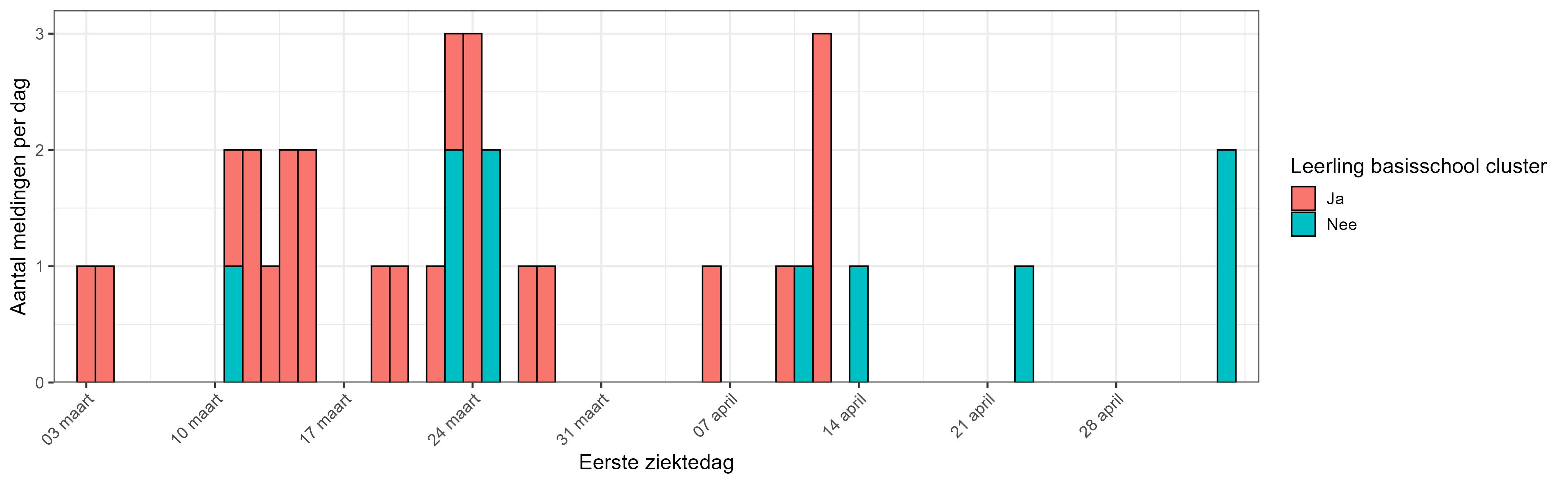 Van de basisschool van het cluster werden uiteindelijk dertien van de ongeveer honderd kinderen gevaccineerd, waarvan negen eerste BMR-vaccinaties (BMR1). Het is niet bekend of de ouders van deze dertien kinderen ook op de informatiebijeenkomst zijn geweest.
