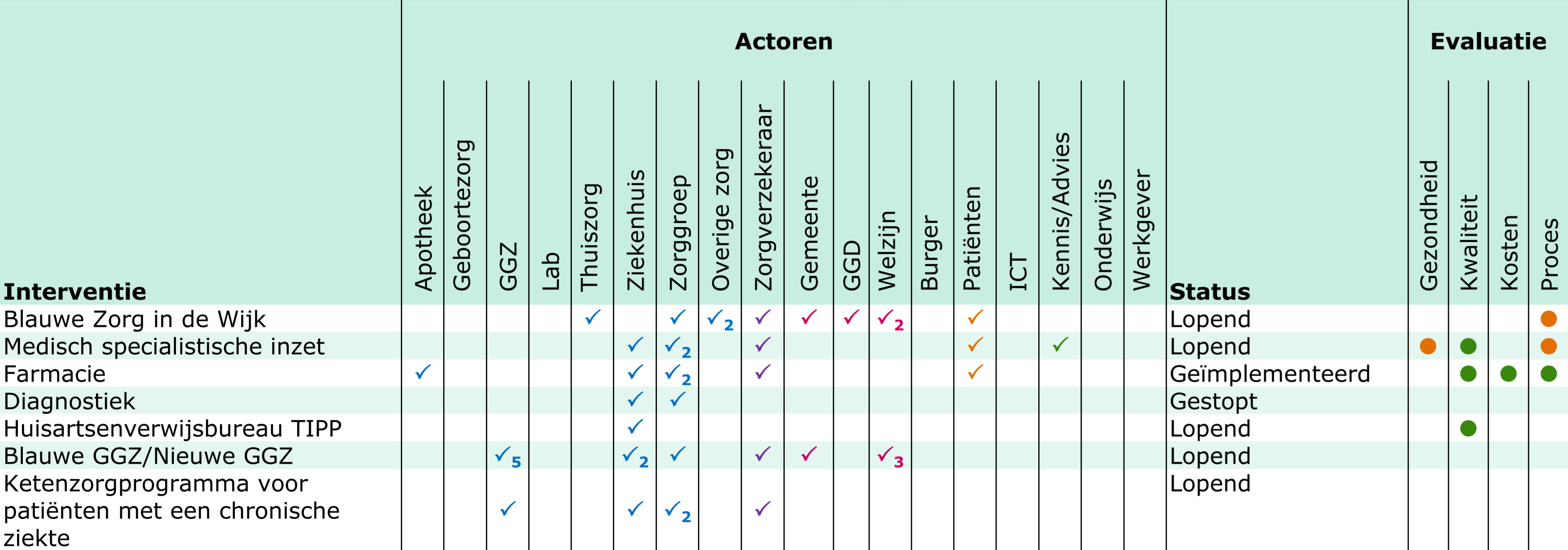 Resultaten: Een studie naar de faciliterende en hinderende factoren liet zien dat een gemeenschappelijk gedachtegoed de belangrijkste stimulans was. Het meest hinderend bleek terughoudendheid om dit gedachtegoed prioriteit te geven en verschillende prestatie-uitkomsten tussen organisaties. Overige uitkomsten worden momenteel nog verzameld. De resultaten hiervan worden verwacht in 2019/2020.