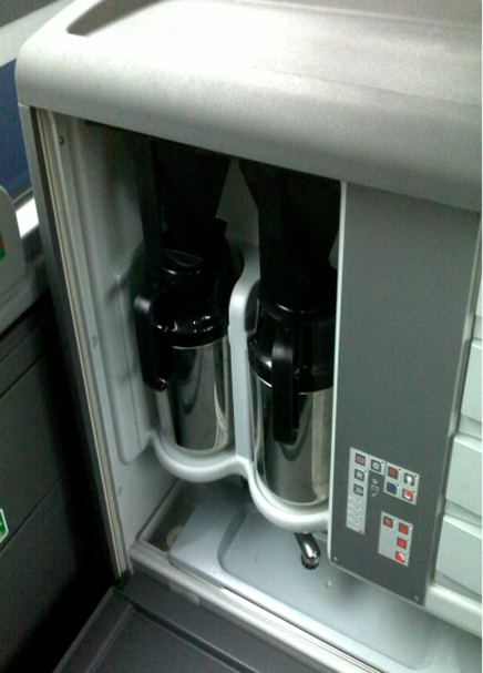 Figuur 1 Het keukentje in de bus met koffieapparaat en thermoskannen