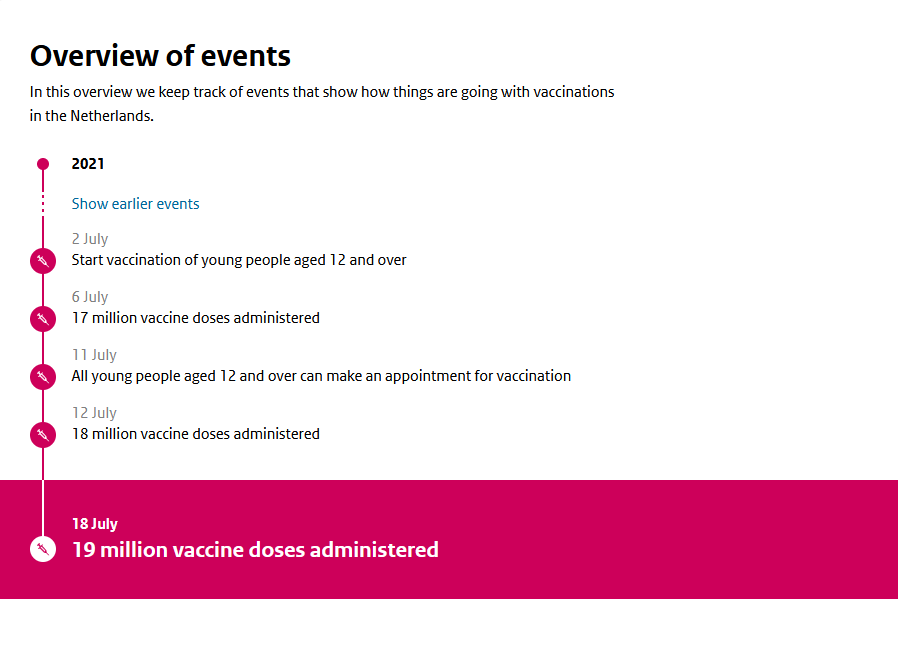Regarding the shorter interval between appointments to receive an mRNA vaccine (the COVID-19 vaccines made by Pfizer/BioNTech and Moderna) from the Municipal Public Health Services (GGDs), GGD GHOR Netherlands has announced that an interval of 28 days will be used from Monday 19 July 2021 on. This is the minimum permissible interval for the Moderna vaccine according to the package leaflet, and it is not possible to make a distinction between the Pfizer/BioNTech and Moderna vaccines when scheduling vaccinations. Since young people under 18 years old are only vaccinated with the Pfizer/BioNTech vaccine, it is possible to reduce the interval for this group even further, down to 21 days. An interval of 35 days had been used so far. It will take some time to arrange this properly in the current systems, so for the time being the shorter interval only applies to new appointments. There is an exception for young people under 18: they can bring forward an existing appointment for the second vaccination if they want to.