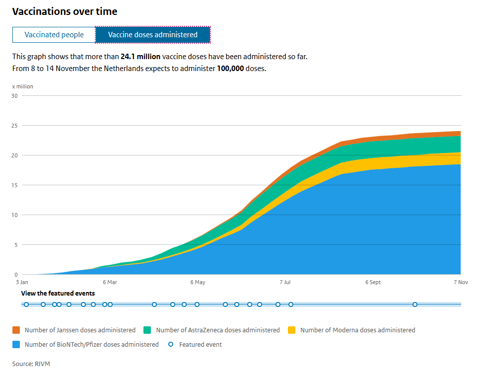 Approximately 24 million doses of COVID-19 vaccine have been administered in the Netherlands by now. This does not yet include the third doses for people with severely impaired immunity.
