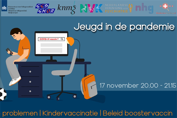 On 17 November 2021 at 20:00, a national live broadcast for all healthcare professionals will be provided by MedischeScholing.nl, facilitated by RIVM, the Royal Dutch Medical Association (KNMG), the Dutch Paediatrics Society (NVK), GGD-GHOR and the Dutch College of General Practitioners (NHG). An average of 18,000 colleagues per session joined in for the last 13 webinars. The broadcast on 17 November will cover such difficult topics such as the booster vaccination policy, vaccinations for children (5-12 years) and the increase in mental health problems among young people due to the COVID pandemic.