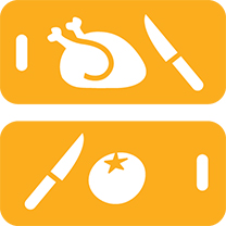 Make sure that prepared food does not come into contact with products that are not cooked yet. Use different cutting boards to chop raw meat and vegetables. Wash your knives with dish detergent in between or use different knives.