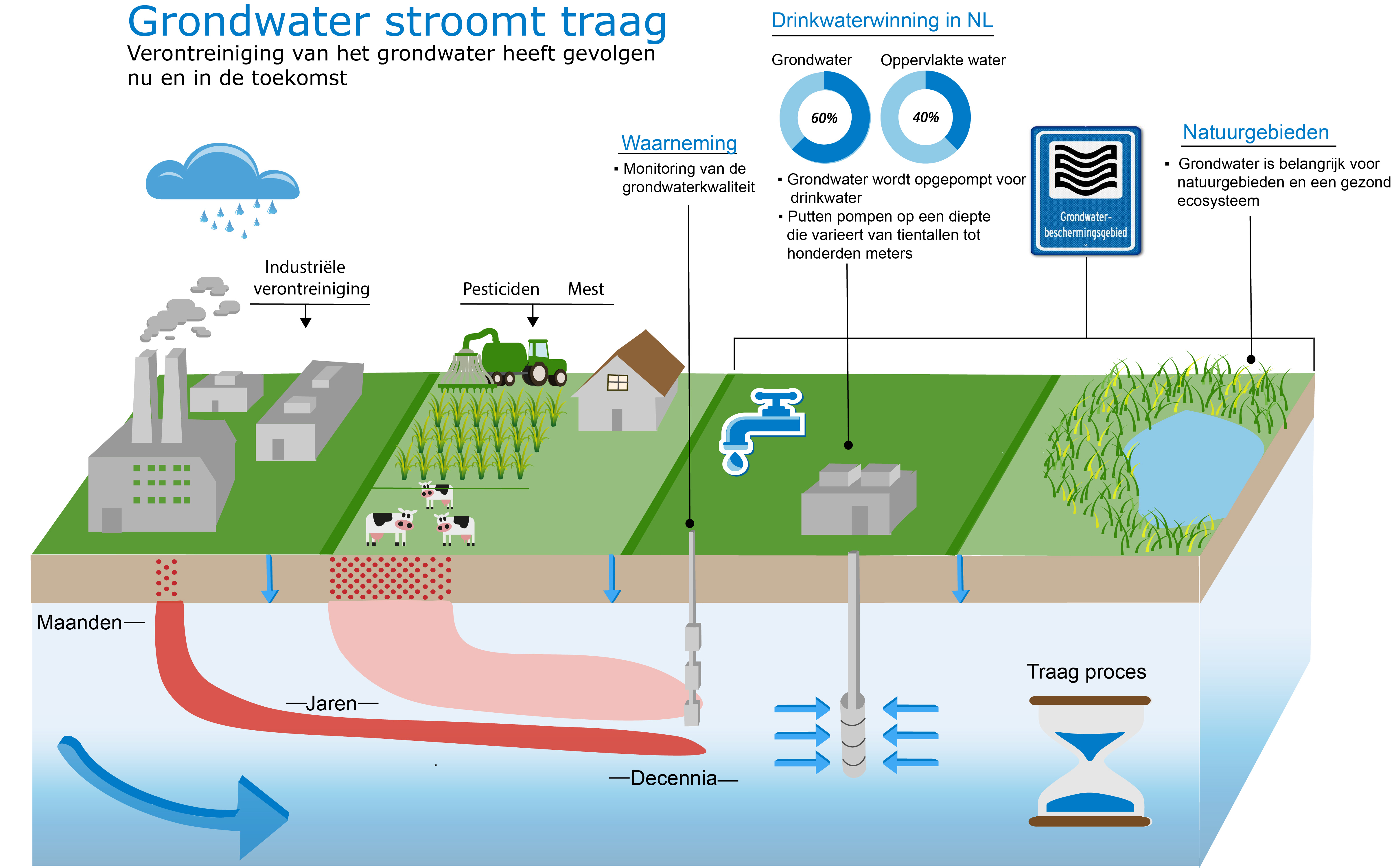 Grondwater is water dat in de bodem zit. Het is daar vooral via neerslag in terechtgekomen. Grondwater is een belangrijke bron voor drinkwater. Bovendien is grondwater van grote betekenis voor natuurgebieden en voor een gezond ecosysteem.