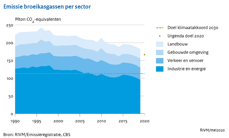 Het doel is om in 2020 een broeikasgasuitstoot te hebben die 25 procent lager is dan in 1990 (uitspraak in de Urgenda-rechtszaak). Daarvoor is een daling van nog 7 procent extra nodig ten opzichte van 1990 ofwel ruim 16 megaton.