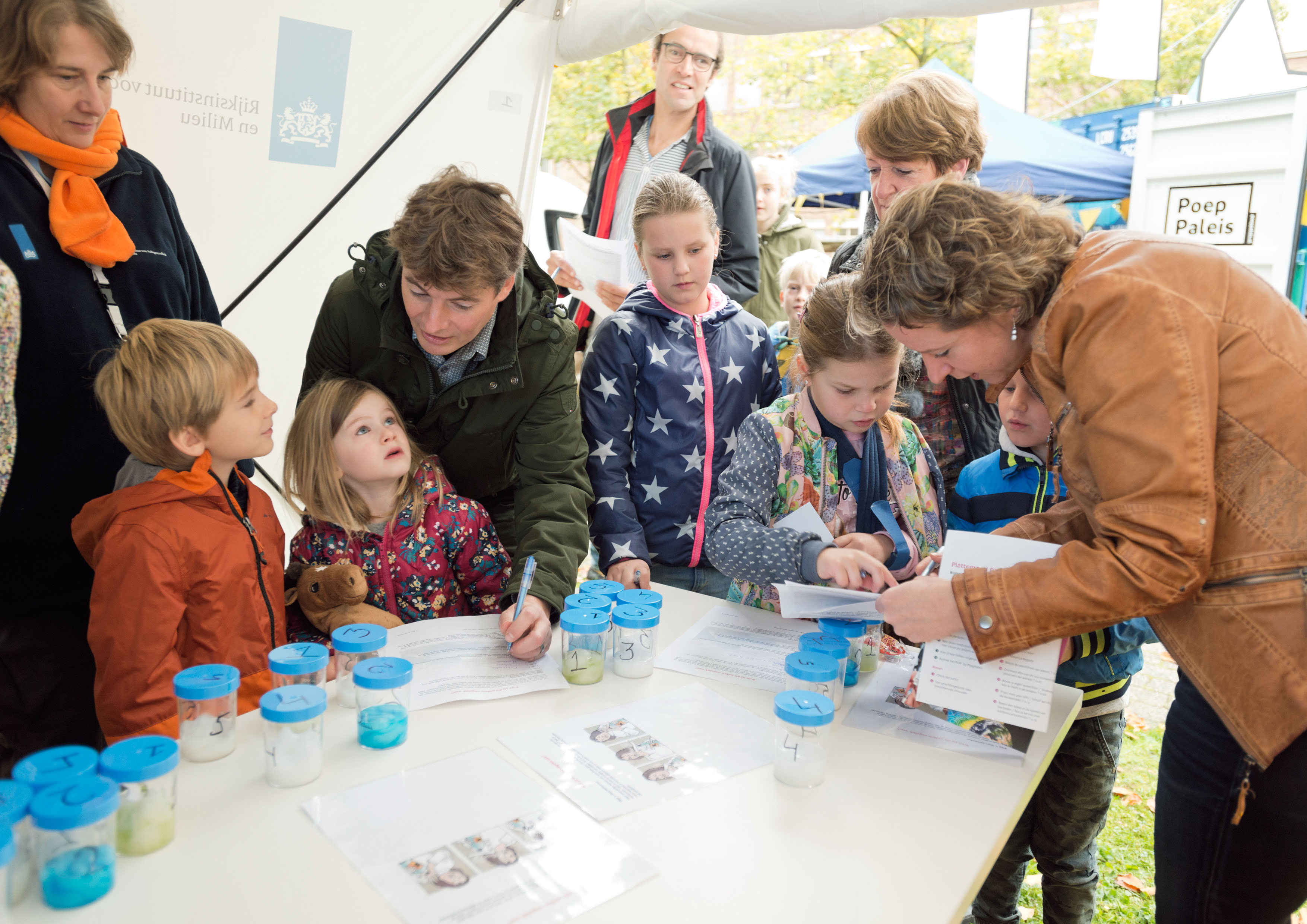 Door het ruiken en meten van stoffen en het bekijken van monstername-apparatuur maakten kinderen en volwassenen kennis met de mobiele laboratoria van het RIVM.