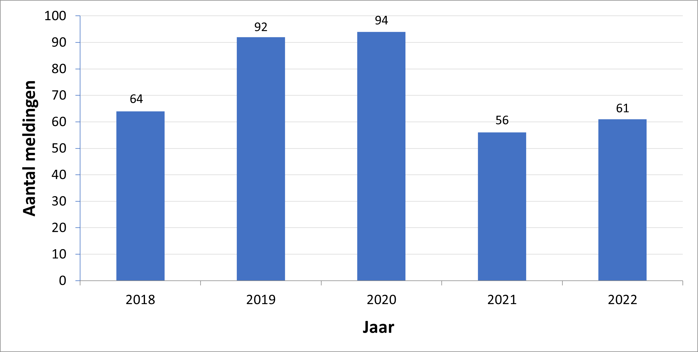 Meldingen papegaaienziekte per jaar