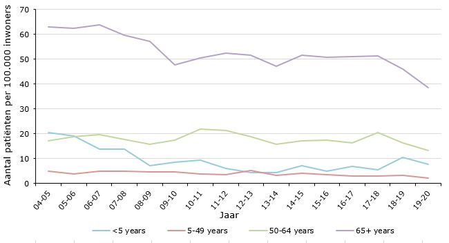 Figuur 1. Aantal gevallen van invasieve pneumokokkenziekte per 100.000 inwoners per jaar