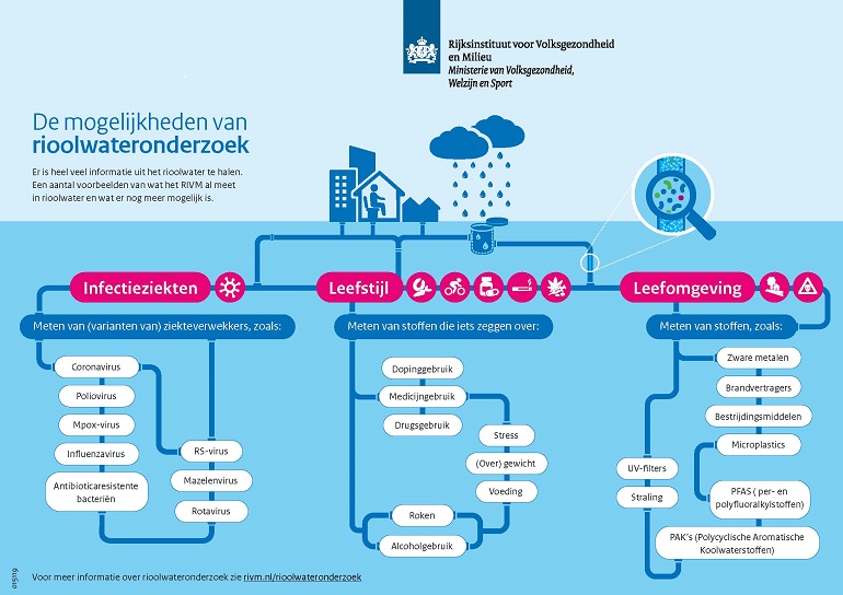 Er is heel veel informatie uit het rioolwater te halen. Een aantal voorbeelden van wat het RIVM al meet in rioolwater en wat er nog meer mogelijk is.