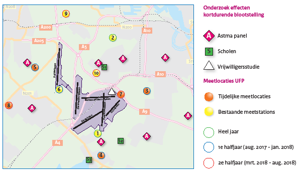 Het studiegebied voor de langdurige effecten bevat 30 gemeenten (zie figuur). De studie naar acute effecten vond plaats een kleiner gebied (zie 2e figuur) dichtbij de luchthaven (waar de blootstelling relatief hoog is) . Voor de langetermijn studie is een groter studiegebied gekozen, zodat aan de buitenranden de ultrafijnstof concentratie van vliegverkeer bijna verwaarloosbaar klein is. Dit deel van het studiegebied kan daardoor als controle dienen. Deze werkwijze is een algemeen geaccepteerde methode in epidemiologisch onderzoek.