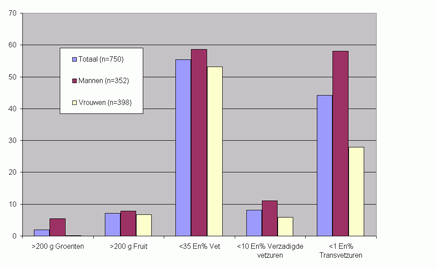 - Bijna 60% van de mannen en 28% van de vrouwen gebruikte een voeding die minder dan 1 energie% transvetzuren bevatte.