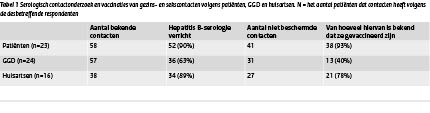 - Tabel 1 Serologisch contactonderzoek en vaccinaties van gezins- en sekscontacten volgens patienten, GGD en huisartsen