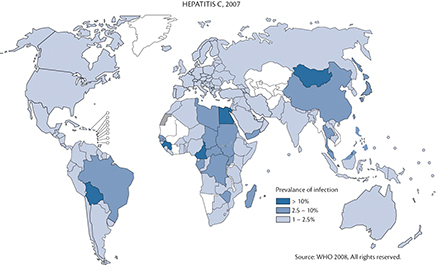 Figuur 2. Prevalentie van hepatitis C. (Bron: WHO)