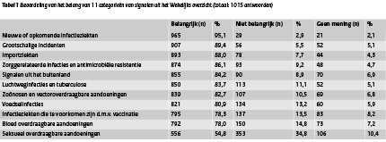 Tabel 1 Beoordeling van het belang van 11 categorieën van signalen uit het Wekelijks overzicht (totaal: 1015 antwoorden)