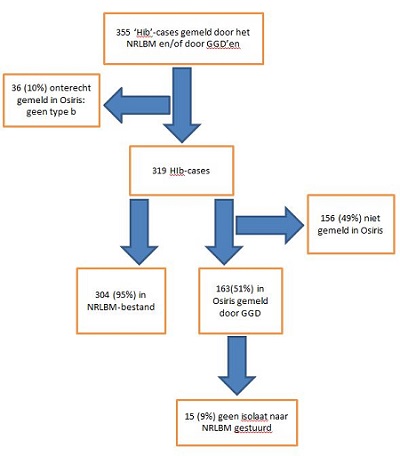 Invasieve infectie met Haemophilus-influenzae type b (Hib) werd in 2009 meldingsplichtig, om de effectiviteit van vaccinatie te kunnen monitoren en waardoor de GGD (Gemeentelijke Gezondheidsdienst)’en chemoprofylaxe kunnen adviseren. Het Nederlandse surveillancesysteem voor invasieve Hib (haemophilus influenzae type b)-ziekte bestaat uit een combinatie van registratie van de aantallen Hi(b)-isolaten die door Medisch Microbiologische Laboratoria (MML’s) naar het Nederlands Referentie Laboratorium voor Bacteriële Meningitis (NRLBM) worden gestuurd voor typering en de meldingen die door GGD’en conform de meldingsplicht in Osiris worden gedaan. Wij hebben onderzocht waarom er via het NRLBM (Nederlands Referentie Laboratorium voor Bacteriële Meningitis ) bijna 2 keer meer patiënten met Hib-ziekte gemeld worden dan via Osiris. Het melden aan en door de GGD wordt regelmatig per abuis niet gedaan omdat men nog op een typeringsuitslag gewacht en daarna vergeet te melden. Ook twijfel over de meldingsplicht wanneer Hib niet in liquor, maar wel in andere normaal steriele lichaamsvloeistoffen wordt gevonden, speelt een rol. Wij brengen via deze rapportage de meldingscriteria voor invasieve Hib-ziekte opnieuw onder de aandacht bij GGD’en en MML (medisch microbiologisch laboratorium)’s.